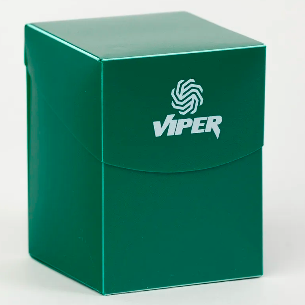 Deckbox em plástico rígido para acomodar cartas. A tampa tem um caimento de abre/fecha perfeito. Possui divisória em plástico removível. A deckbox acomoda até 100 cartas com double sleeve (dupla proteção). Acompanha embalagem em cartão com janela transparente em plástico para visualização do produto. Possui aplicação em silk com a logo Viper.