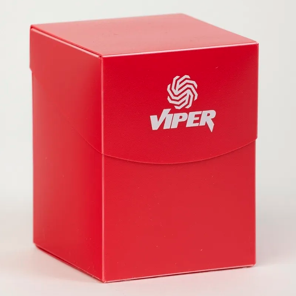 Deckbox em plástico rígido para acomodar cartas. A tampa tem um caimento de abre/fecha perfeito. Possui divisória em plástico removível. A deckbox acomoda até 100 cartas com double sleeve (dupla proteção). Acompanha embalagem em cartão com janela transparente em plástico para visualização do produto. Possui aplicação em silk com a logo Viper.