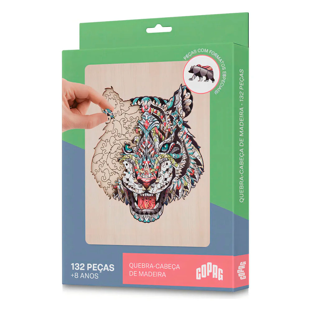 - Jogo Quebra Cabeça de Madeira Estampa Tigre Carton.